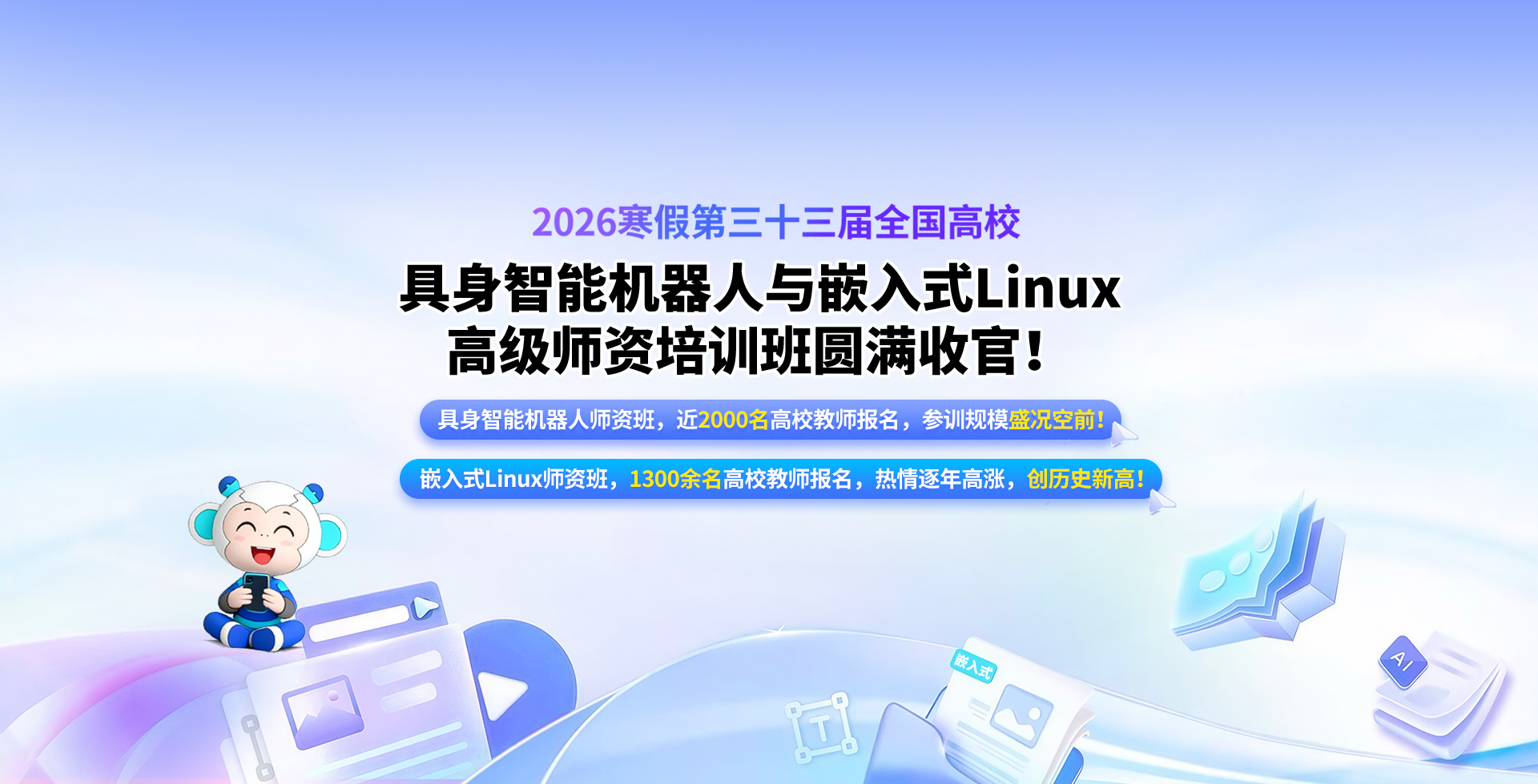 为高校/高职高专院校提供嵌入式实验室建设方案, 包括ARM嵌入式、RISC-V、Android、单片机等技术方向教学实验平台及综合实训设备,18年嵌入式系统教学经验,嵌入式教学实训一体化解决方案。