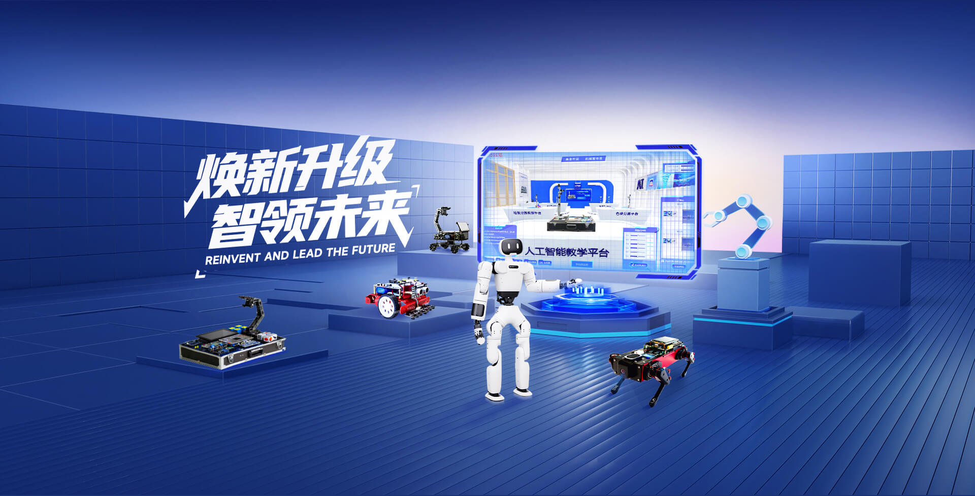 为高校/高职高专院校提供AI人工智能实验室建设方案, 包括人工智能基础教学实验平台、人工智能机器人教学平台、人工智能行业创新应用实训平台,助力人工智能专业学科建设/课程改革/实训教学。