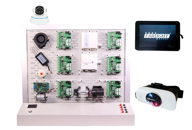 VR物联网智能农业实训台,这不仅仅是物联网的行业应用的一种体现形式,更是一种加入了智能云系统、VR虚拟场景控制的广义的物联网系统。它是融合嵌入式、物联网、云、VR虚拟现实等未来电子信息化技术发展趋势的一种新形式,它使得物联网实验室不再只有严谨的技术理论,使得实验实训更具特色化和趣味性,特别适合物联网、Android移动互联网、VR等专业开展学习。