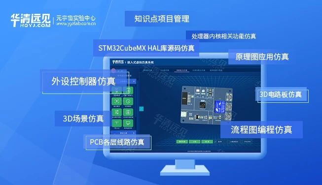 华清远见元宇宙嵌入式虚拟仿真在线教学平台,具有丰富完善的平台仿真功能,支持知识点项目管理、处理器内核相关功能仿真、外设控制器仿真、原理图应用仿真、PCB各层线路仿真、3D电路板仿真、3D场景仿真、流程图编程仿真、STM32CubeMXHAL库源码仿真;支持FreeRTOS、RT-Thread等RTOS;支持LVGL等UI,覆盖整个嵌入式体系化教学。