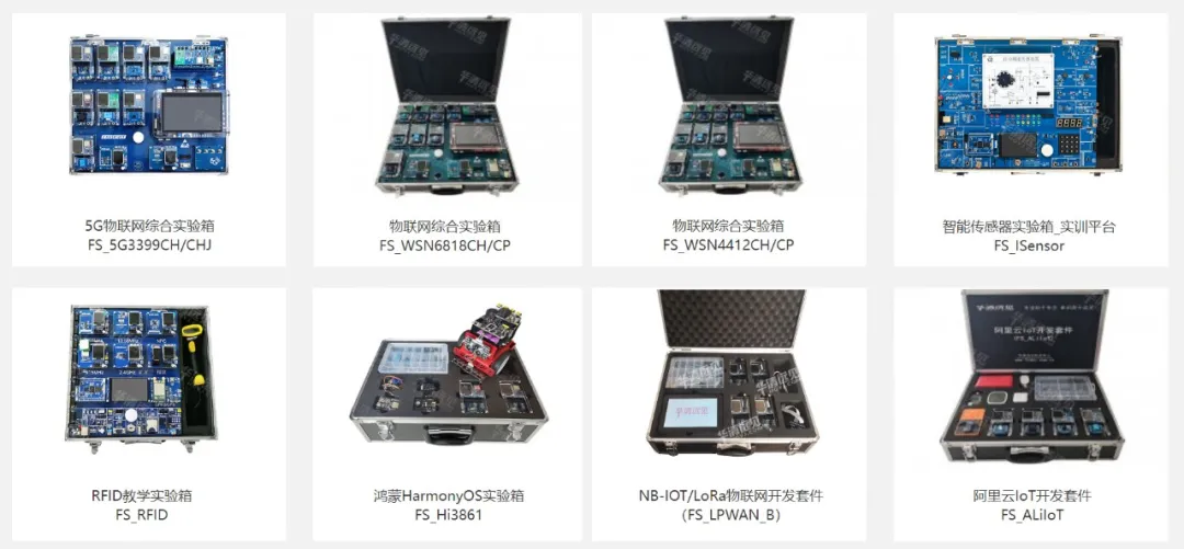 2.物联网实验箱:主要开展无线传感网络、传感器应用、单片机开发、RFID射频技术、物联网操作系统(如AliOS Things、HarmonyOS)及云计算/人工智能融合等方向的教学,培养学生掌握物联网系统开发(硬件设计、通信协议、云平台接入等)及项目实践能力,满足行业的技术人才需求。