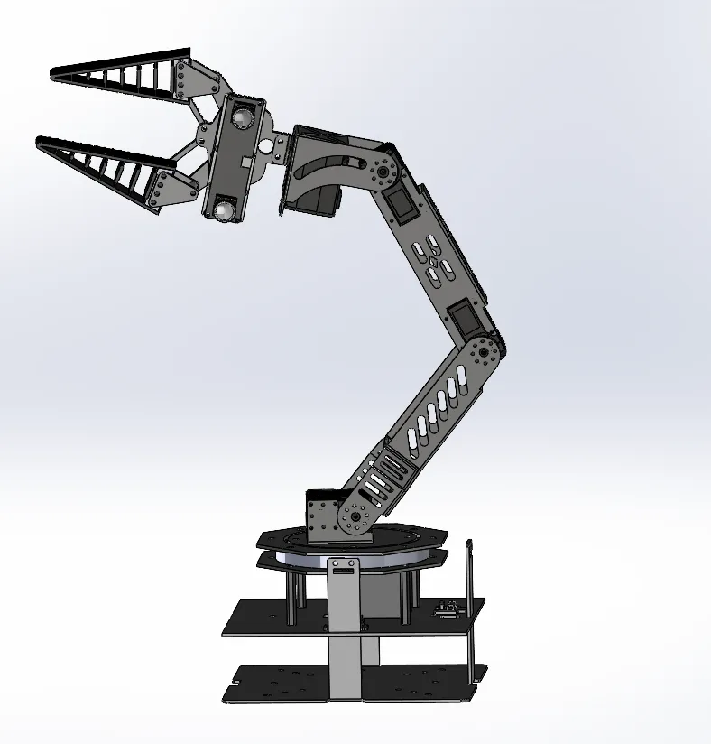 1.机械臂:基于ROS开发,集成双目相机与目标检测算法,实现对目标的精准识别与定位。通过运动学正逆解计算和PID控制,驱动六自由度机械臂完成自主抓取与操作任务,具备高精度、高稳定性及良好的实时响应能力,适用于智能制造、自动化分拣等场景,展示了机器人感知与控制的完整技术流程。