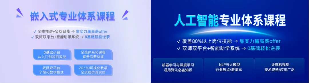 立体化课程以 “技术栈贯通 + 场景化驱动” 为设计理念,打破学科壁垒,融入行业前沿技术与方法论,助力高校培养具备系统思维与创新能力的复合型人才。例如嵌入式体系课从原理解析到硬件实操再到综合项,逐层夯实 “底层逻辑 + 工程实践” 能力,培养具备全链路执行能力的研发型技术人才;人工智能体系课实战全栈项目,聚焦 “数据采集 - 模型训练 - 硬件部署” 全流程,培养跨领域协作与系统级开发思维,塑造掌握全流程技术的算法型创新人才。