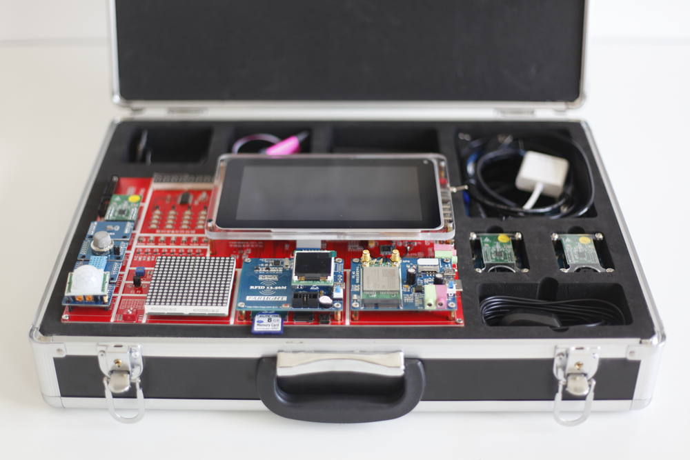另外这款实验箱专为教学定制和选取的丰富外设,包含4G模块、RFID模块、矩阵键盘、500W像素自动对焦摄像头等;并且支持RS485总线、CAN总线、Zigbee、Wi-Fi、Bluetooth4.0、4G/GPS等多种有线、无线网络通信方式。