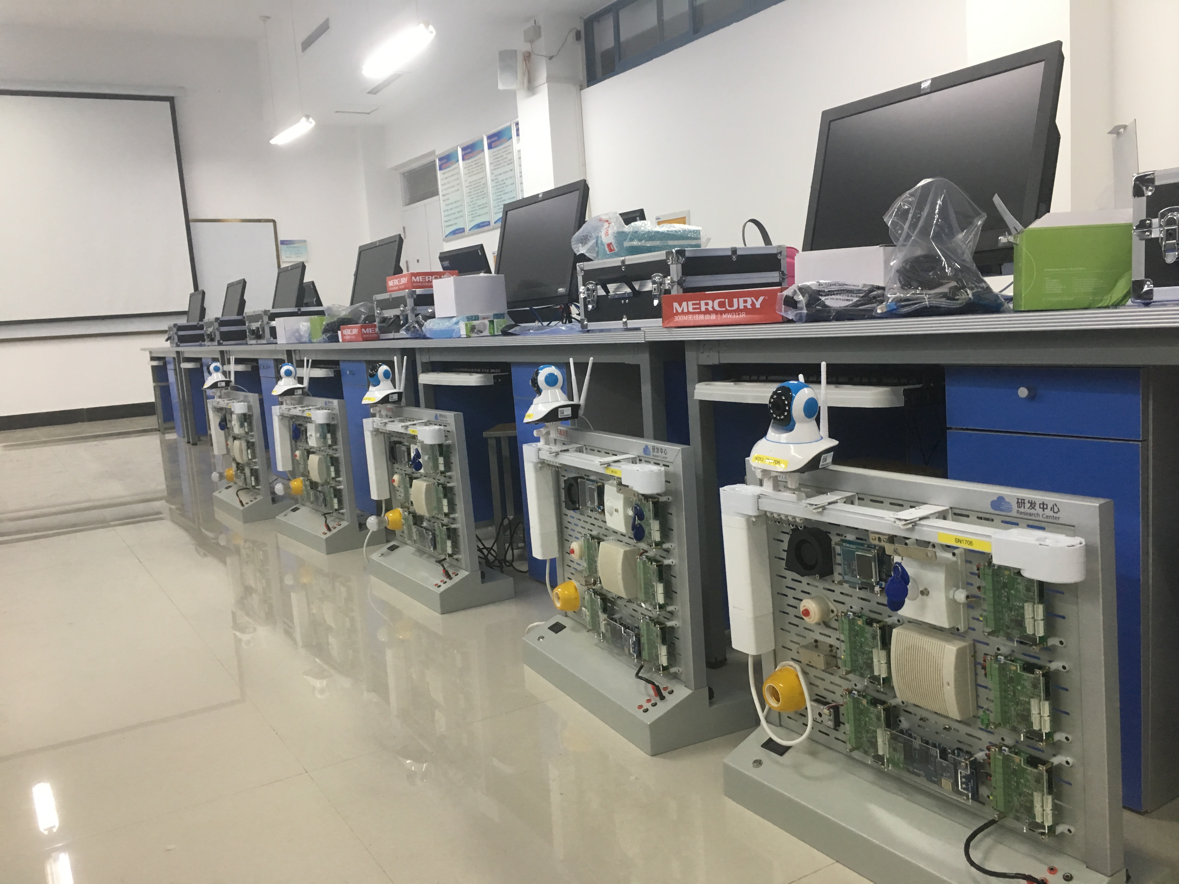 针对学校的培养学生的团队协作能力与嵌入式开发能力的要求,华清远见为商丘师范学院建设了VR物联网实训室。针对项目式教学,通过实际项目将理论学习与工程实际结合,能充分发挥学生的主观能动性,培养学生独立思考的能力、团队协作能力和分析问题、解决问题的能力。学生能在实践中学习到包含C#编程、JAVA编程、C编程、Android应用开发、嵌入式技术、物联网技术、RFID识别技术、无线组网技术以及ARM理论等多个方面的知识。