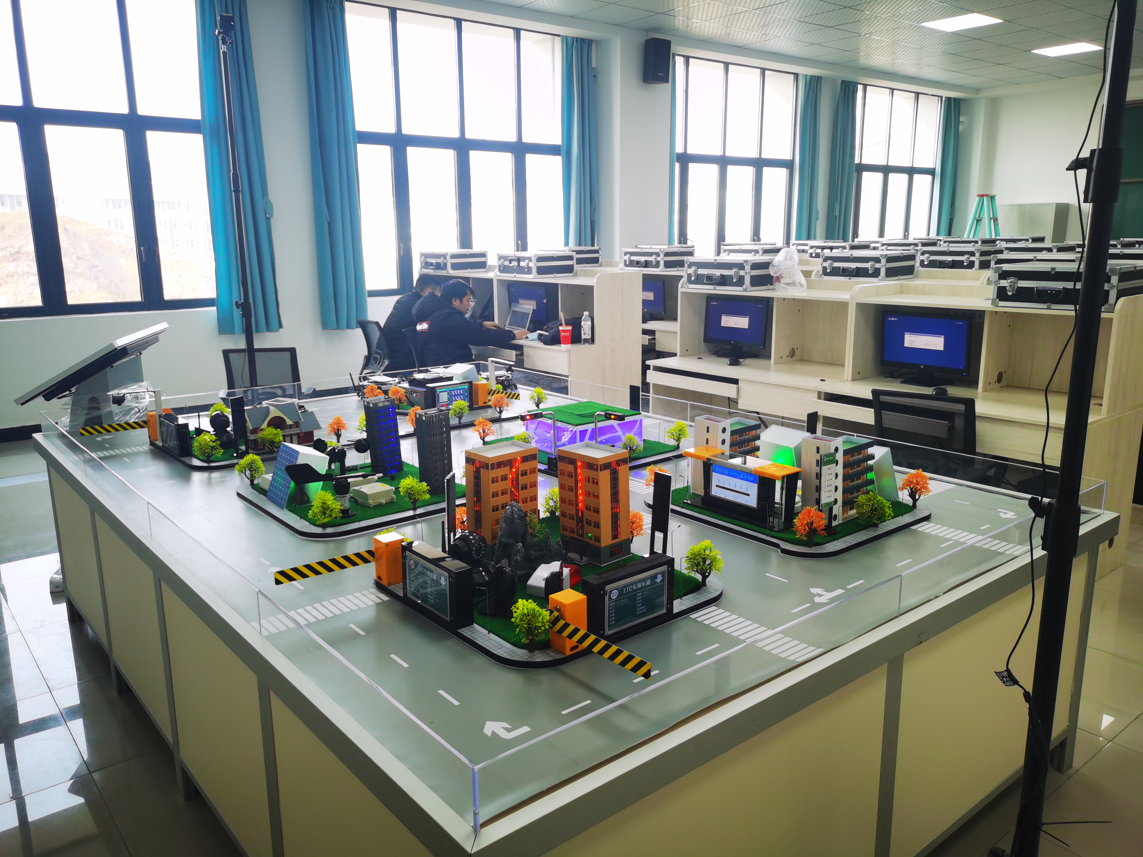 华清远见研发工程师对AI智能交通综合实训系统沙盘等实验设备的使用及实验操作进行相关培训。