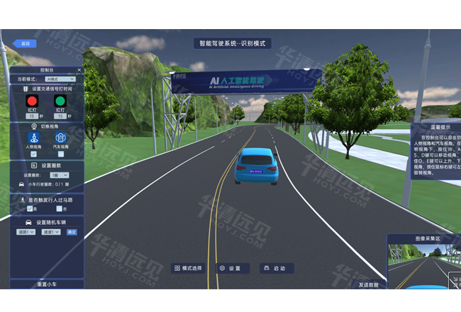 · 机器视觉与车牌识别实验:上传车牌图像或在 3D 视觉场景中自定义车牌(如 “京 A・05432”“沪 B・6643U”),调用 AI 模型完成车牌定位、字符识别,加载 OpenCV 的 SVM 模型进行训练与验证,理解智能交通车牌识别的技术流程;