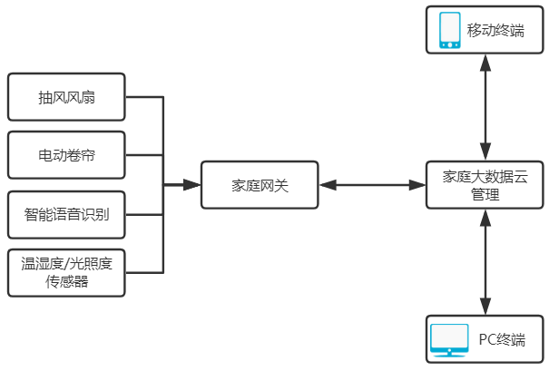 涉及系统:智能家电控制系统、智能窗帘控制系统、 智能语音控制系统、环境监测联动系统。
